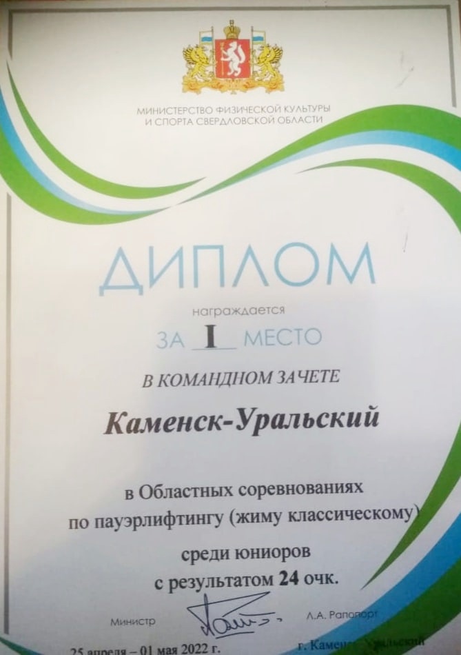 среди юниоров -1 место. “классический жим”.